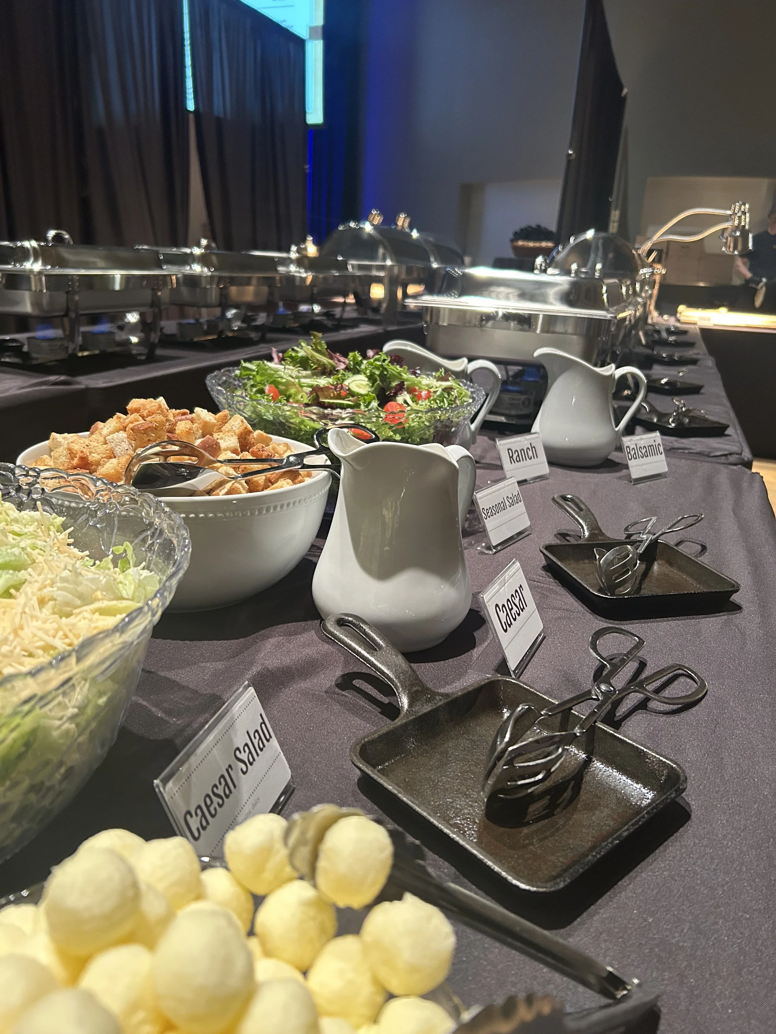 Brunch: smoked trout spread, bagels, cream cheese variety, capers, onions, cucumbers, hard boiled eggs, fruit, quiche
