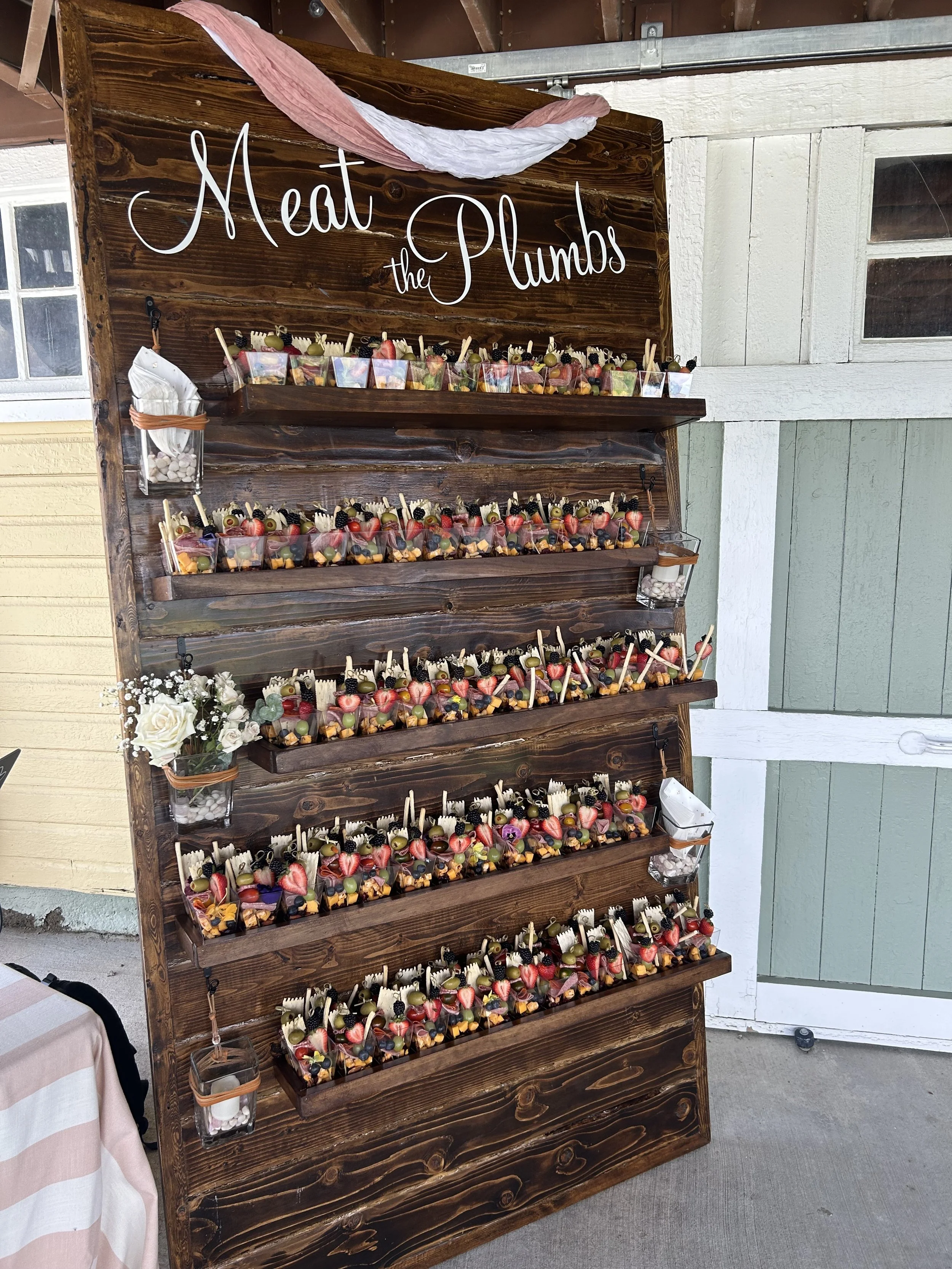Combination Grazing Table: charcuterie selections, cheeses, accouterments, veggies, fruits, sweet treats, etc.